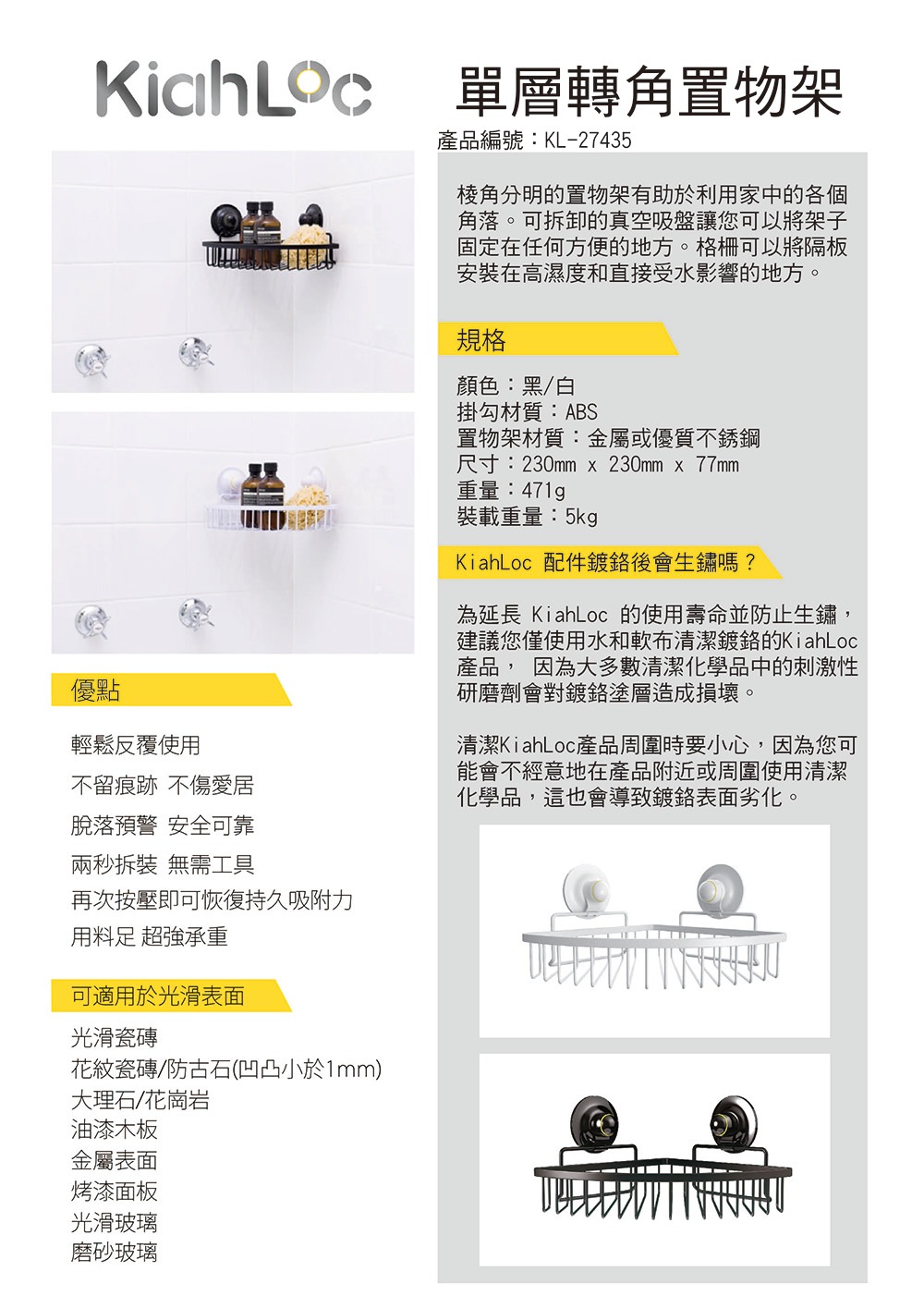 KL-27435(B)單層轉角置物架(黑)